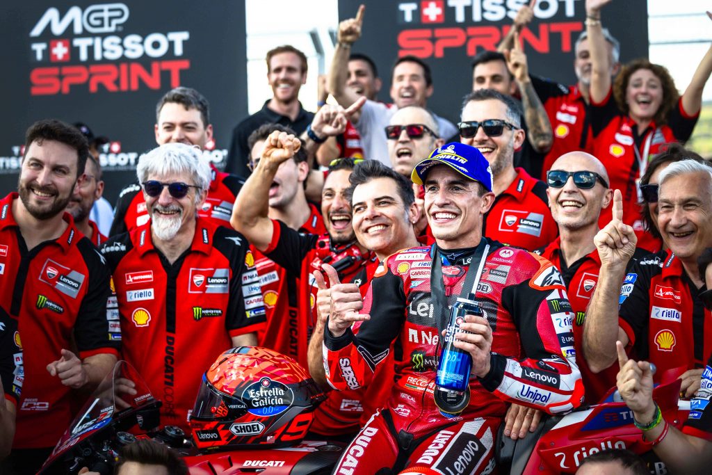 - En la Sprint lideraba la persecución sobre el líder inicial, Fabio Di Giannantonio, para superar al italiano en las vueltas finales y ganar así su primera carrera seis meses después de lesión en el hombro del pasado año.